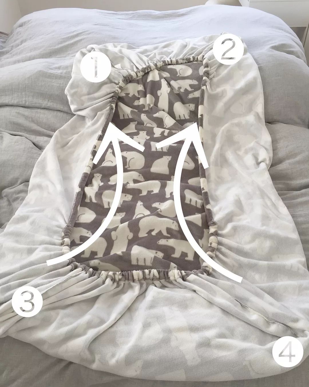 1.将床笠外翻,把3、4两点塞到1、2内;