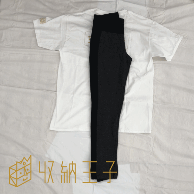 完成!这样叠出的T恤不会轻易散开,但可能会引起衣服变形,适合旅行时携带。