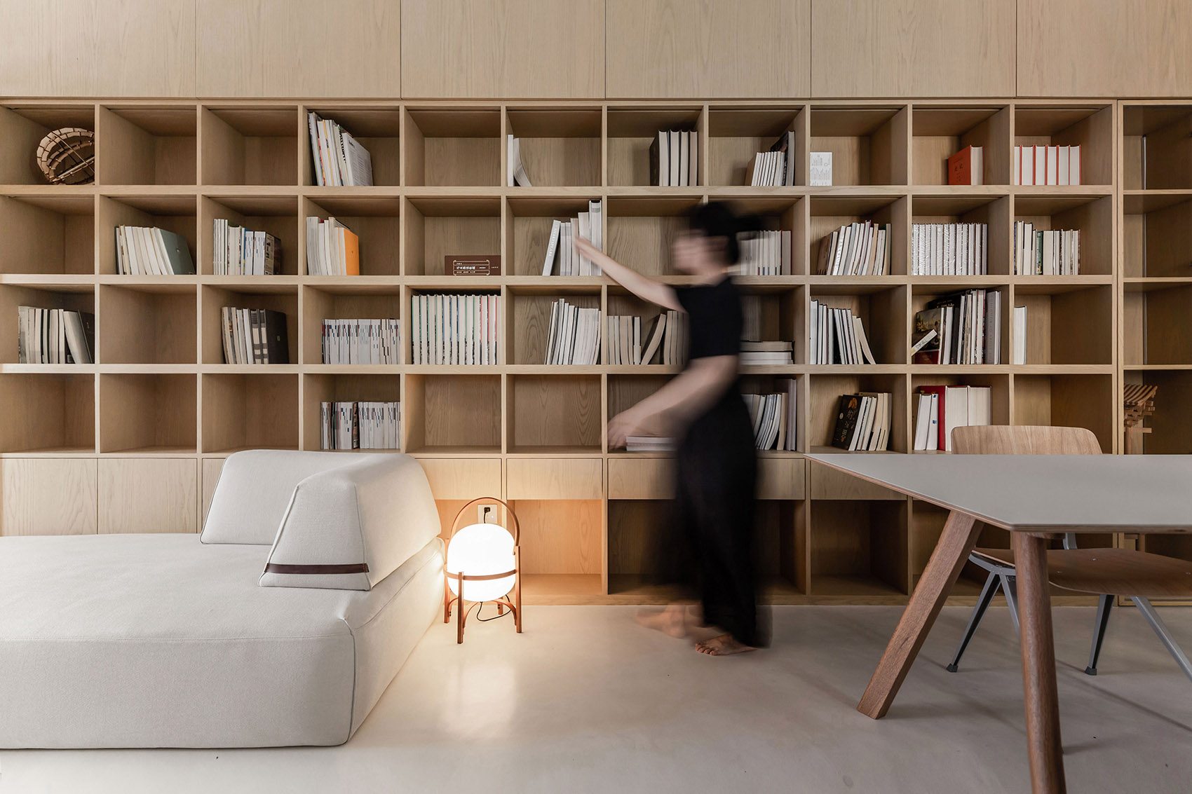 The owner hopes to create an environment where people can’t help to sit down and read books in a space where less than 50 square meters, satisfying three generations in the same space, two people working at the same time, children learning independently, play the piano, and a lot of storage space.Books and some collections need a place to display.