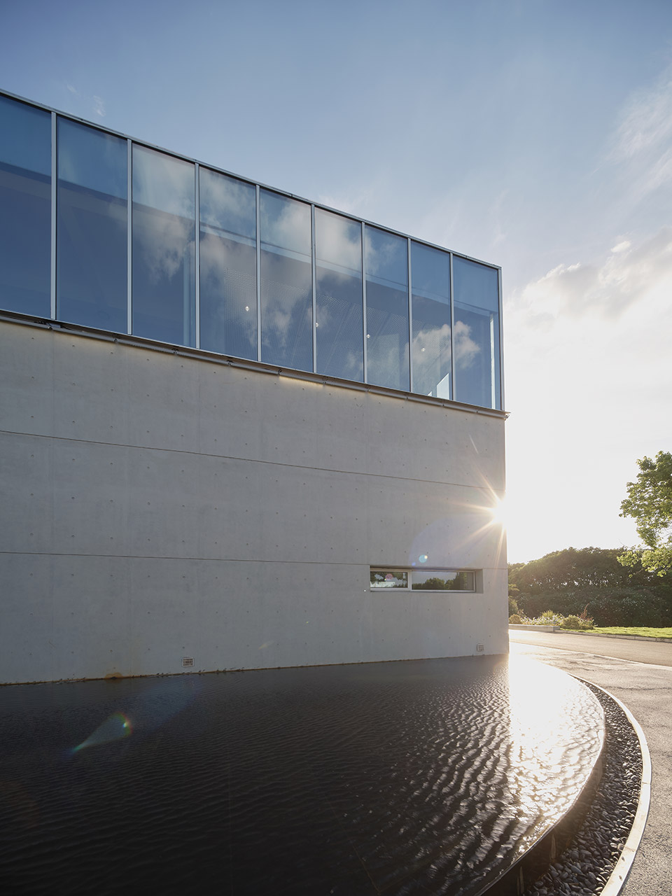 The semicircular mirror pool surrounds the east side of the building ©MLEE STUDIO