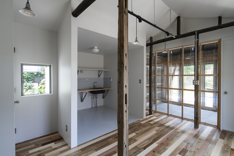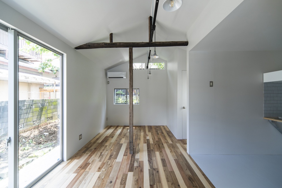 ▼房屋的原始结构界定出起居室与卧室,the original structure of the house defines the living room from the bedroom © Akira Nakamura