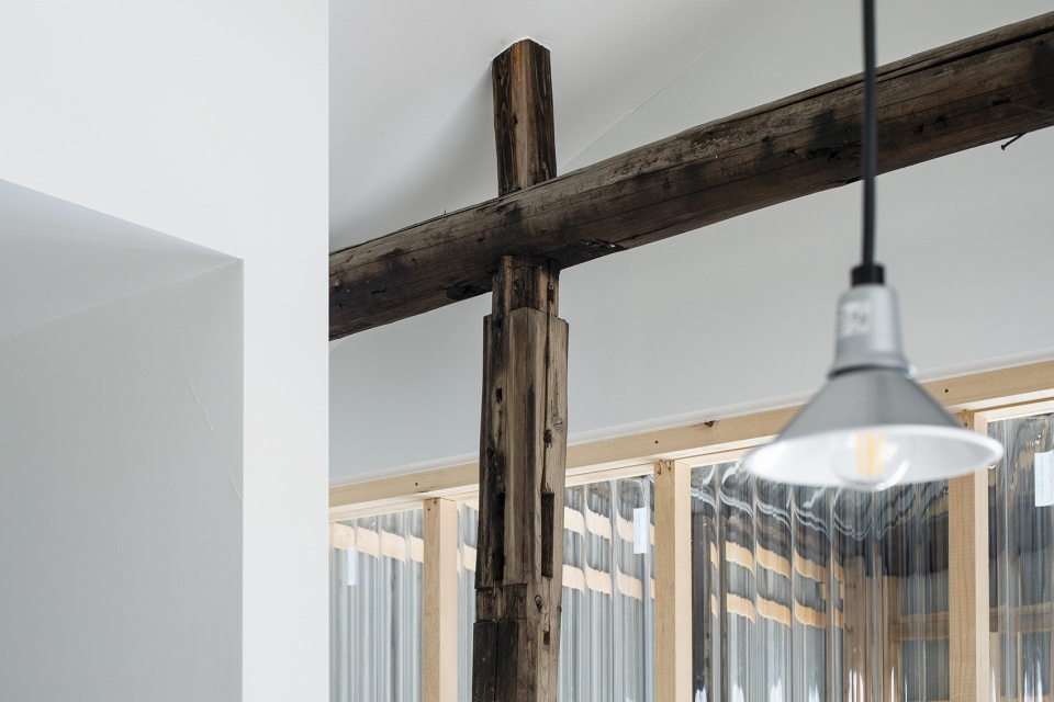 ▼保留下来的原始木制结构,the original wooden structure of the old house © Akira Nakamura