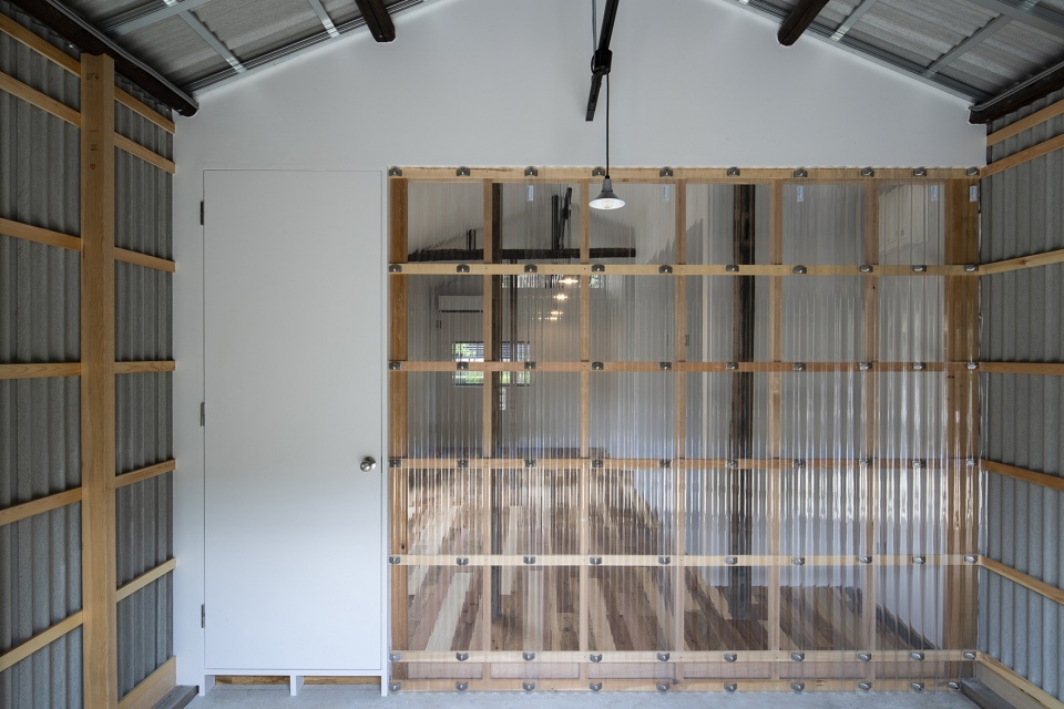 ▼水波纹有机玻璃板与波纹金属板外立面相呼应,the water corrugated plexiglas panels echo corrugated metal panels on the facade © Akira Nakamura