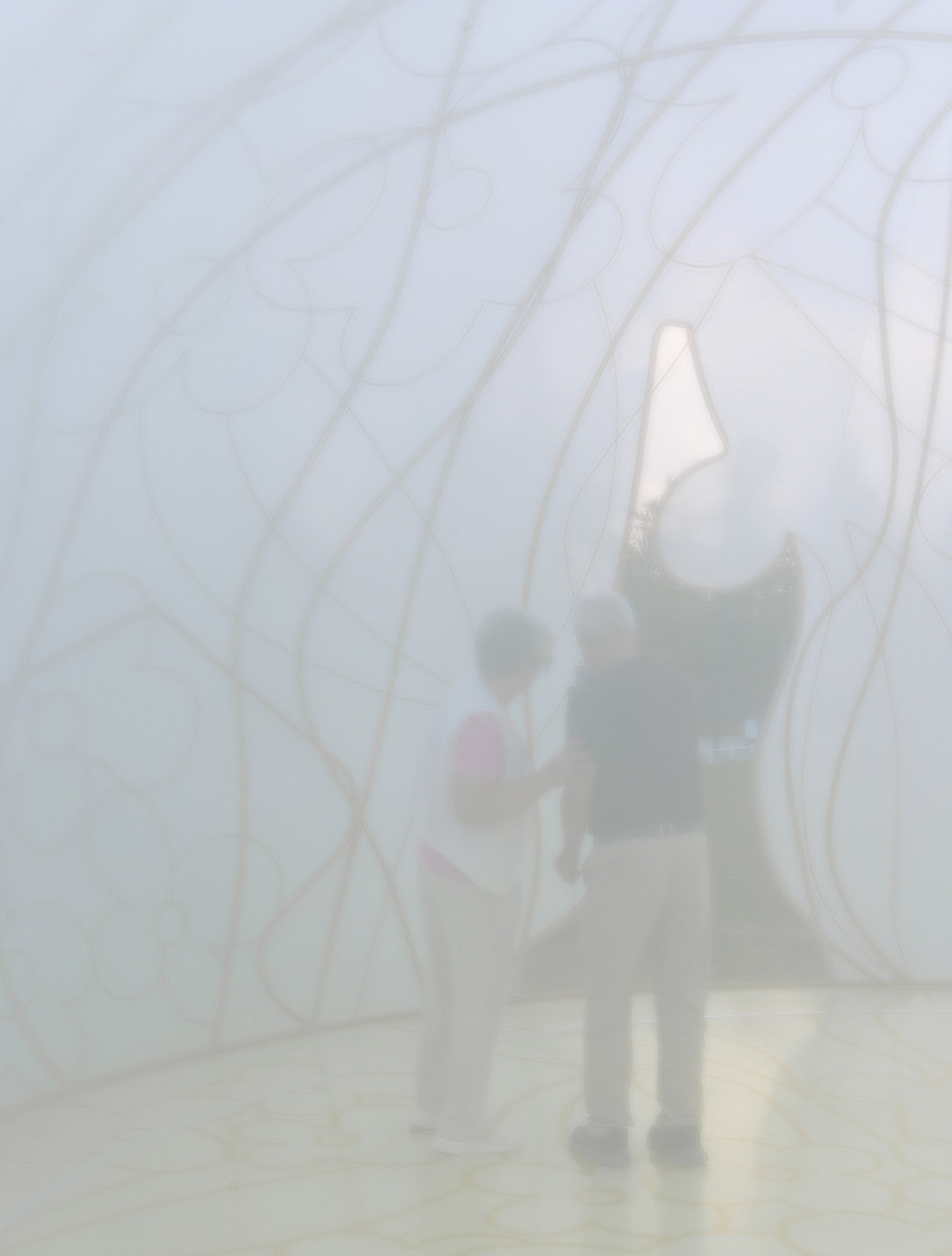 人们可从两个不规则的门洞进入月的内部:在日间被印象派的风景、柔糯的织物环绕;在夜间与藤蔓的阴影、光晕的升起互动。就像走进时间的镜子。