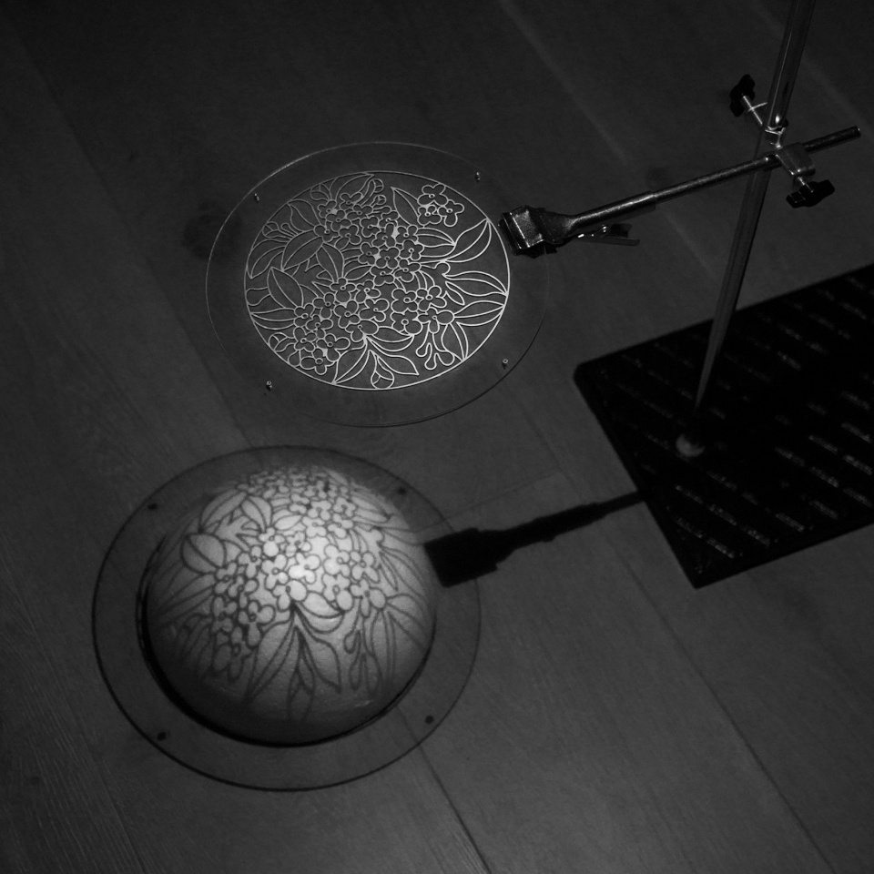 Osmanthus Moon is a short-term public art installation created to celebrate the traditional Chinese Mid-Autumn Festival. It is a projection, specially as well as metaphorically, of the widely beloved traditional osmanthus pattern — a signature plant and flavor of autumn — and forms a dialogue with the action paintings of a folk “Zao Hua” (stove flower) artist, an intangible cultural heritage tradition.